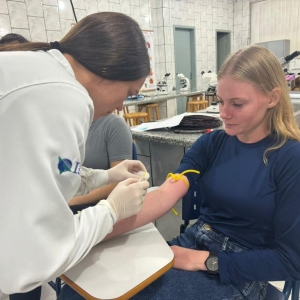 Durante a aula, a professora Karine Martiny, orientou as alunas em várias técnicas essenciais para a prática de enfermagem. As estudantes puderam aprender e praticar a avaliação de sinais vitais, a execução de exames físicos e a utilização de instrumentos médicos, habilidades fundamentais para a formação de profissionais competentes e confiantes. A aula prática permitiu que as alunas interagissem diretamente com os instrumentos e procedimentos, promovendo um aprendizado ativo e colaborativo.